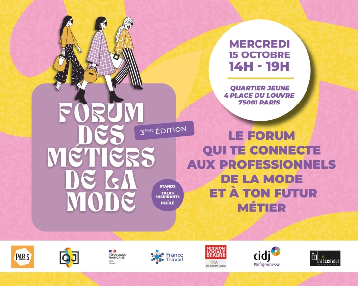 Organisée conjointement par la Mairie de Paris Centre et la Ville de Paris, avec le concours des partenaires France Travail, la Mission Locale de Paris, le CIDJ et L’Ascenseur, cette 3e édition sera dédiée à l’orientation et à l’insertion professionnelle des jeunes et centrée sur les métiers de la mode.
