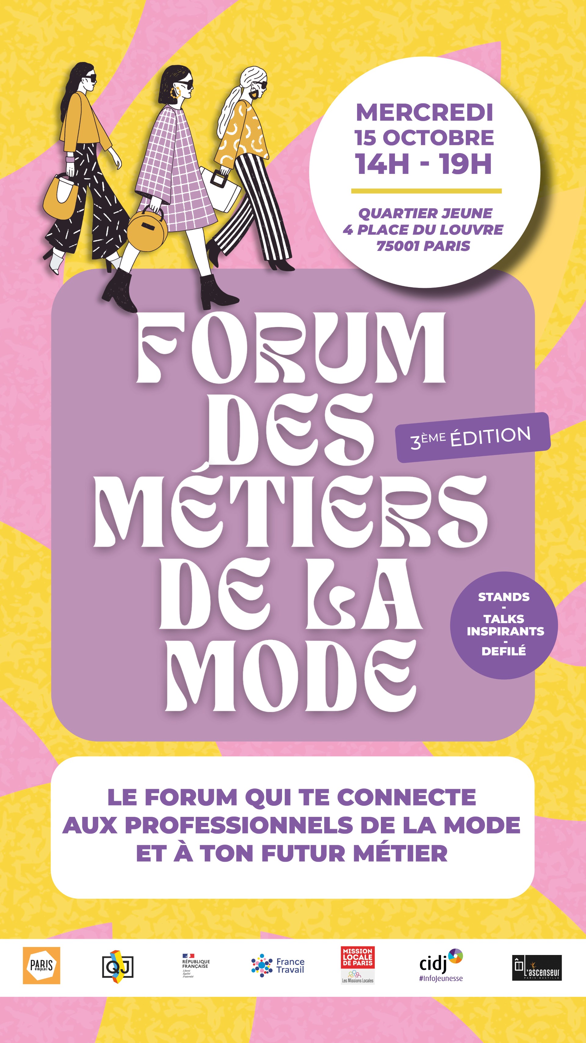 L'édition 2025 du Forum des métiers de la mode se tiendra le mercredi 15 octobre 2025 à Quartier Jeunes (QJ), au 4 place du Louvre, Paris 1er.